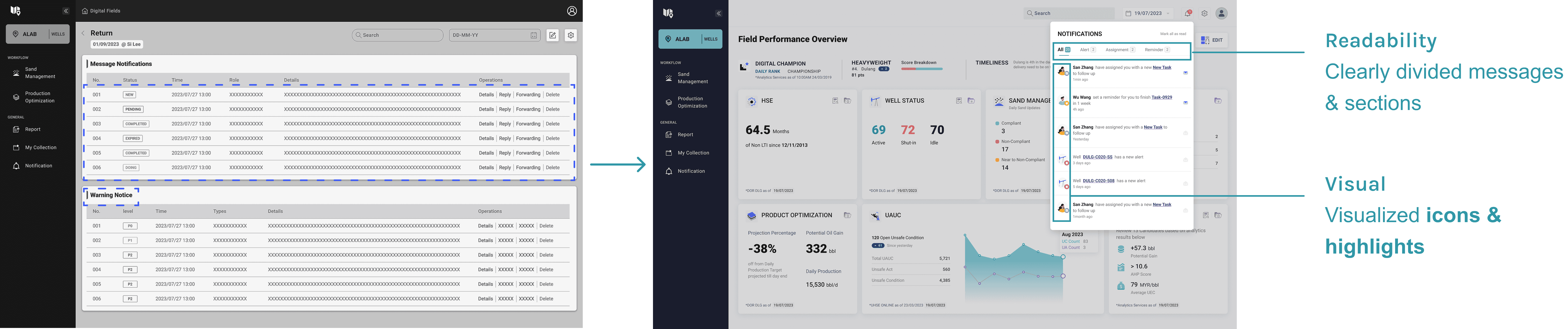 To address these challenges, I redesigned the platform to focus on clarity and efficiency. The new design introduced streamlined workflows, consistent interaction patterns, and role-specific content, ensuring that each user could improve efficiency, support cross-functional collaboration, and enabled decision-making across organization.