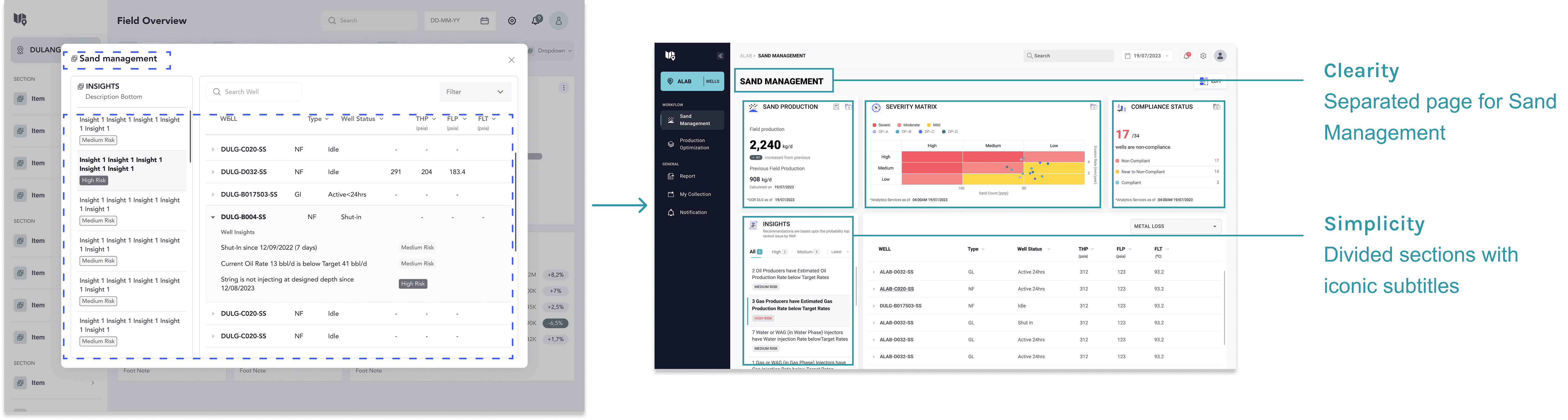 I designed the new workflow for Sand Management and Production Optimization, simplifying and reducing 3 unnecessary steps to make an intuitive experience.